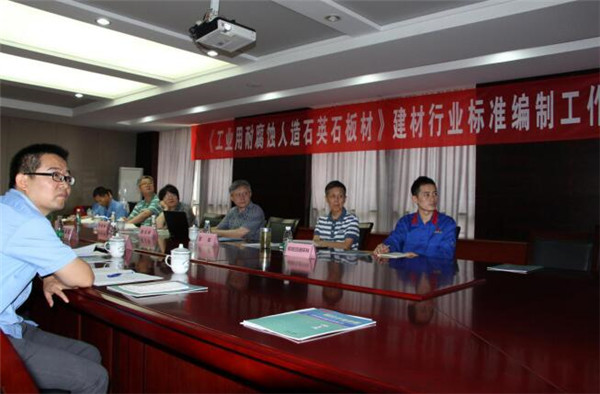 6月23日,《工業(yè)用耐腐蝕人造石英石板材》建材行業(yè)標(biāo)準(zhǔn)討論會(huì)由銅陵四通環(huán)境科技有限公司申報(bào)并組織召開。中國(guó)建筑材料聯(lián)合會(huì)周麗瑋(主任)、全國(guó)石材標(biāo)準(zhǔn)化技術(shù)委員會(huì)周俊興(秘書長(zhǎng)/教授),中國(guó)建筑材料科學(xué)研究總院 胡云林(專家/教授)出席,銅陵四通環(huán)境科技有限公司梅士銀董事長(zhǎng)攜公司高層及相關(guān)技術(shù)人員參加本次討論會(huì)并匯報(bào)。